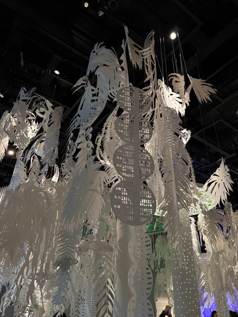 シンガポールパビリオンでは切り絵を使用したもが展示されており印象的でした。進んでいくと最後にはデジタル技術を活用して夜空に自分でメッセージを飛ばすことができとても幻想的な空間でした。