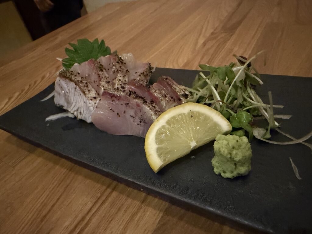 カンパチは身が引き締まっていて鮮度がよく、脂ののりもちょうど良いバランスでした。思わずおかわりしてしまいました。