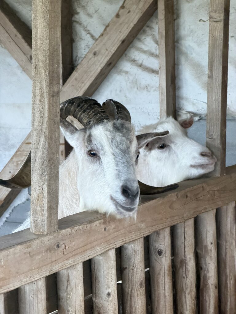 ヤギや羊がのんびり過ごしていて、触れたり近くで写真を撮ったりできます。