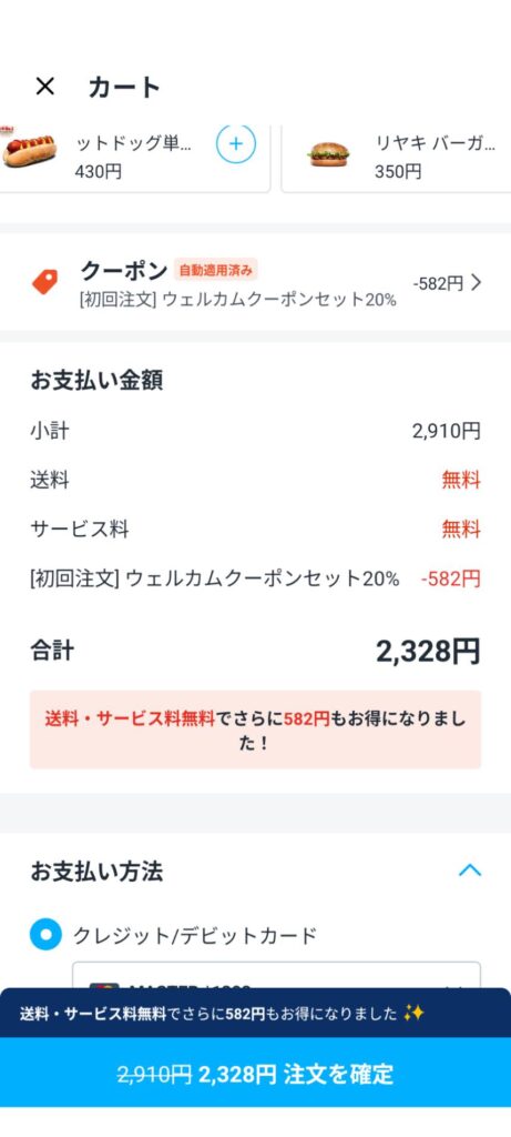 (ウーバーでジョリーパスタを頼んだ時は手数料にびっくりしたなあ…)