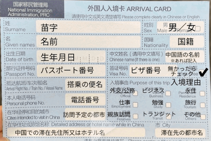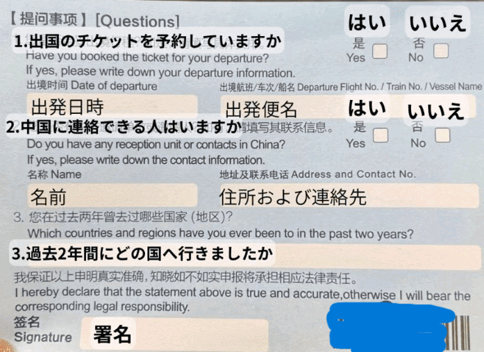 私はチェックイン時に出入国カードをもらい事前に記入しておきました。