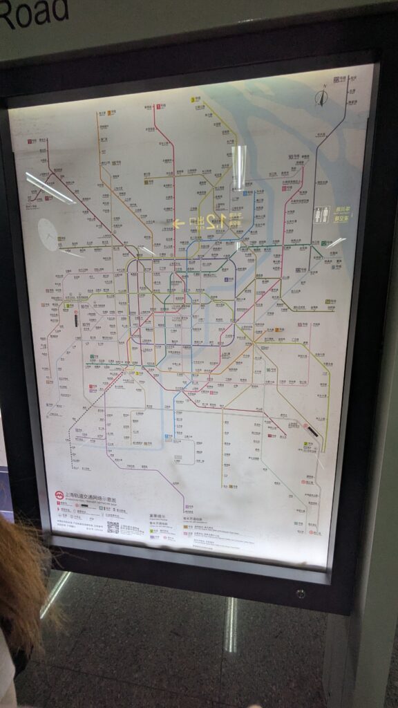 地下鉄でも行けるのですが、上海の地下鉄は日本のように路線が多くなく、乗り換えがかなり複雑という印象でした。↓路線図を載せておきます
