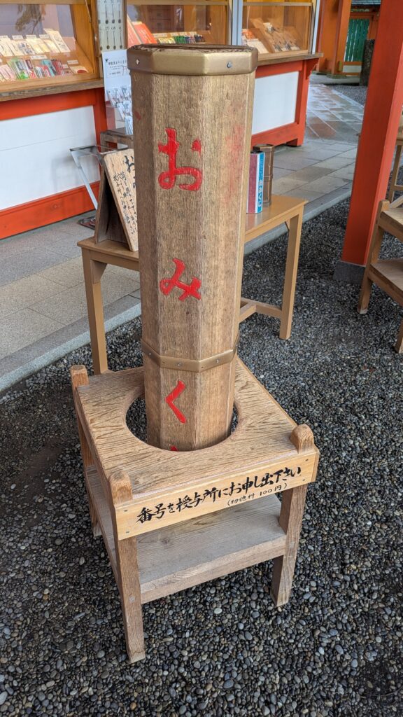 普通のおみくじとは違って、なんと人の背丈ほどもある大きなおみくじ棒を引くんです