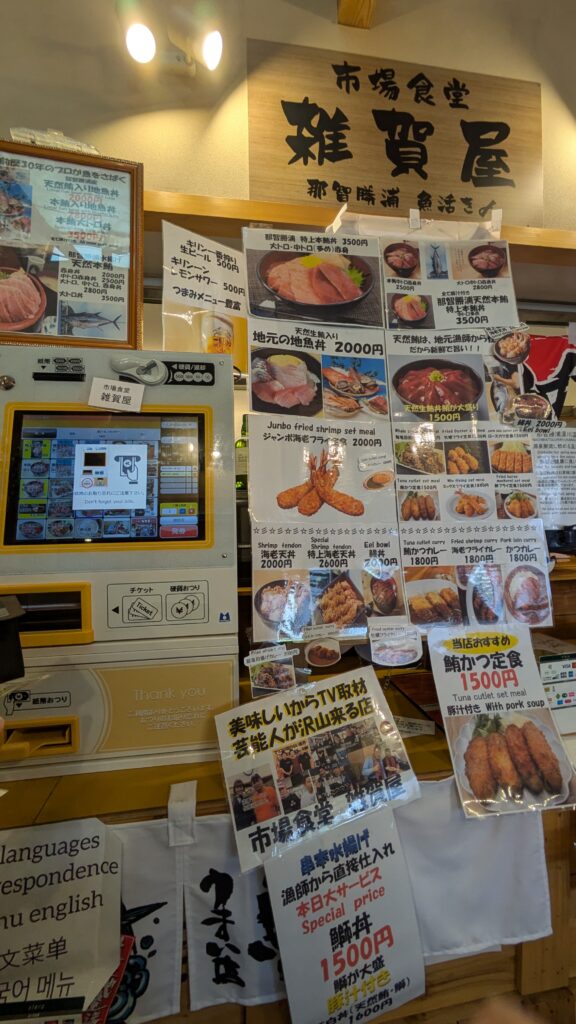 勝浦漁港の中はフードコートみたいな作りになっておりその中に市場食堂 雑賀屋で食べました。