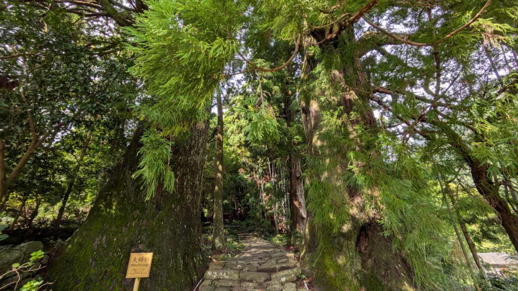 那智の滝到着前には夫婦杉が見れたり、神秘的な空間を堪能することができます